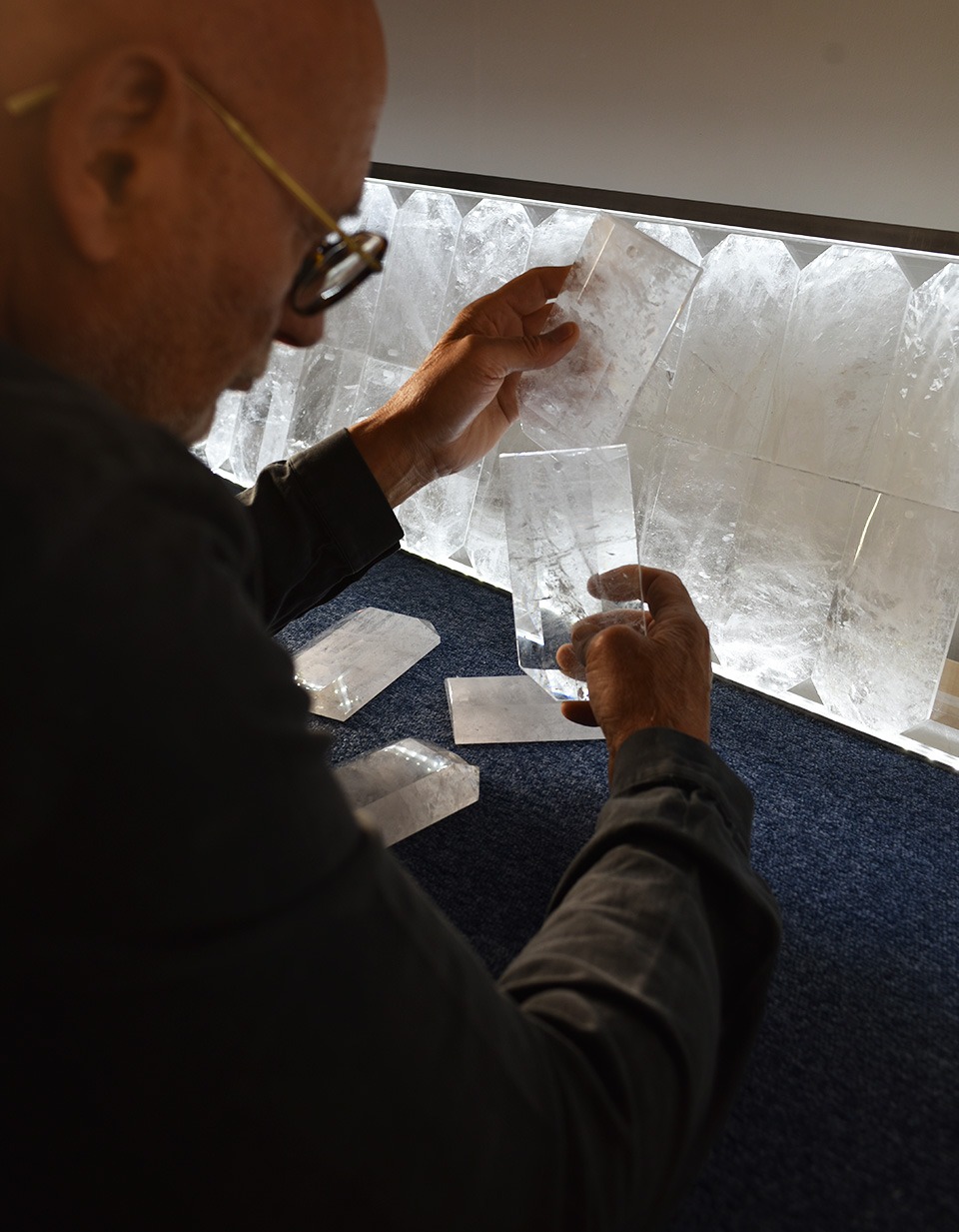 Après avoir sublimé l’albâtre, Alain Ellouz explore les potentialités du cristal de roche. Cette nouvelle matière, brut, lumineuse et fascinante aux transparences multiples ouvre de nouvelles perspectives de création.