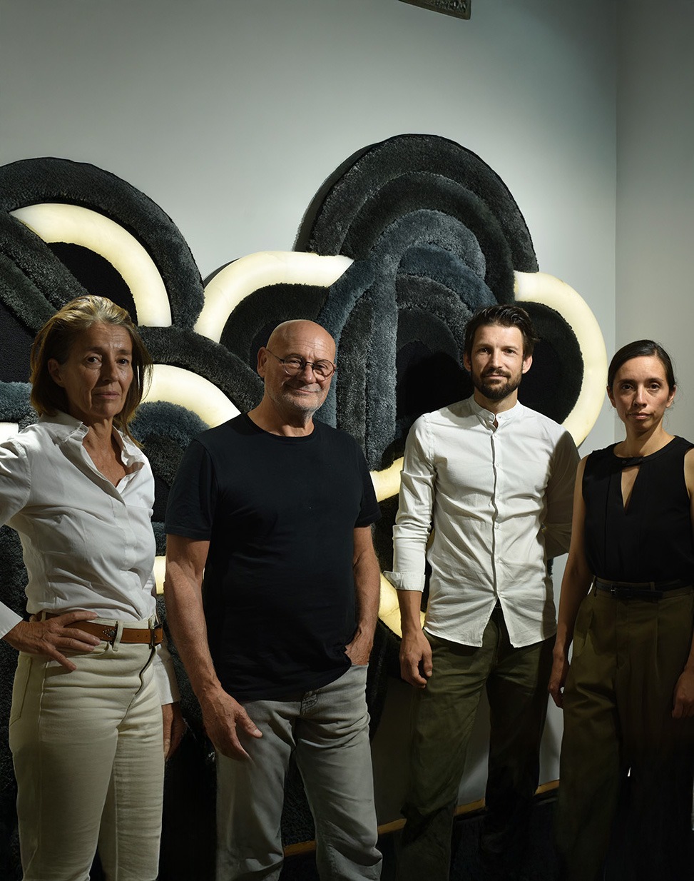 Alain Ellouz imagine un univers inédit où la lumière s’ancre dans la matière. De cette vision singulière sont nés trois pièces d’exception, designer par Danneels + Zafiro, façonnées par nos ateliers et confectionnées par la Manufacture de Tapis de Bourgogne, partenaire de prestige au savoir-faire textile rare. À leurs côtés, notre lumière s’est incarnée dans le fil, le volume et la texture. Chaque pièce est le fruit d’un dialogue étroit entre les mains des artisans et l’intention lumineuse d’Alain Ellouz, pour créer des œuvres sensibles, presque vivantes.