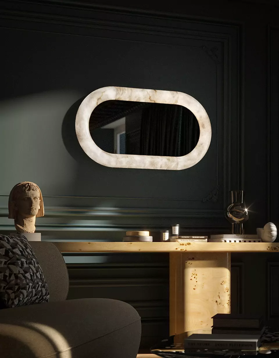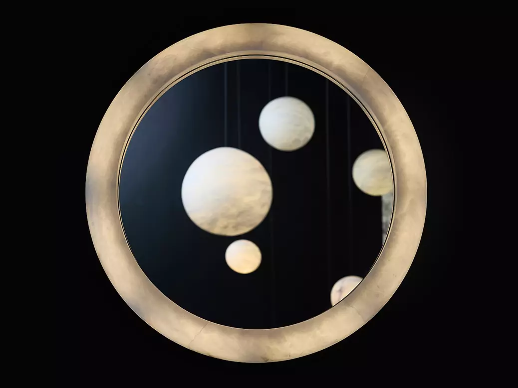 Mettant en valeur l’élégance naturelle de l’albâtre, une pierre calcaire aux reflets doux et raffinés, la collection REFLEXION propose des miroirs en appliques et suspensions, alliant design intemporel et polyvalence.