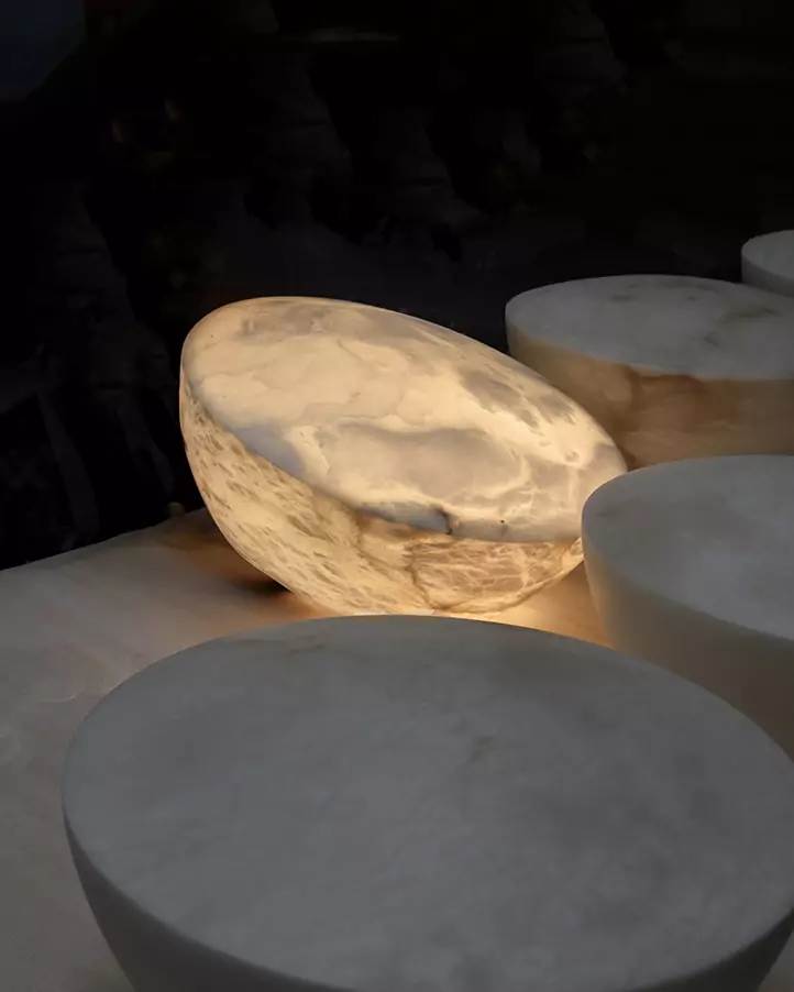 Nos luminaires Alain Ellouz Paris révèlent la beauté des pierres soigneusement sélectionnées. Les veines, les nuances et la transparence de l’albâtre ou du cristal de roche confèrent à chaque création une identité singulière, où la lumière devient une œuvre d’art vivante et exclusive.